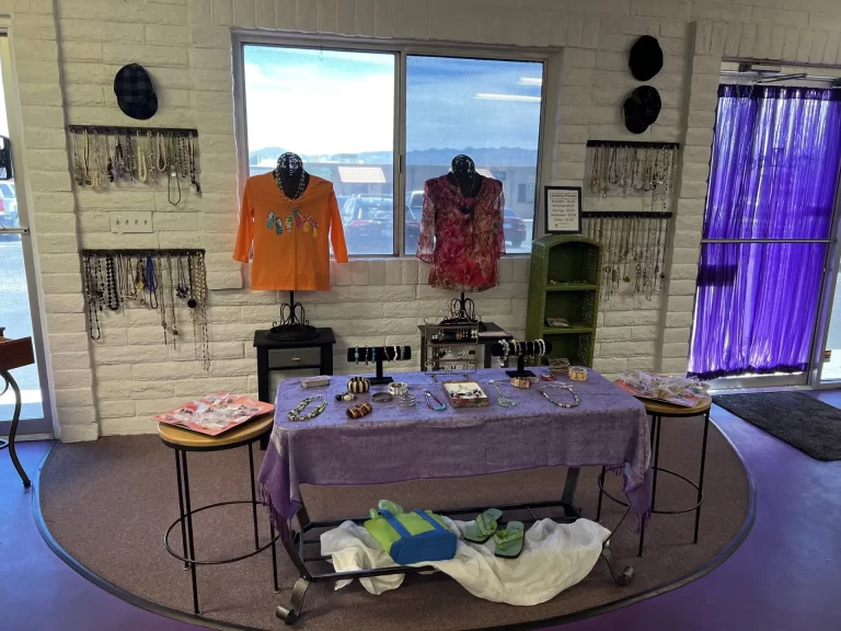 We are a resale shop that handles women and men’s apparel, shoes, jewelry, handbags, etc. located at 231 W. Duval Road, Suite D, opened Monday through Friday, 10:00am-3:00pm. DaZee’s is run by all volunteers! Our proceeds support The Hands of a Friend, Genesis House, a safe house for women and children of domestic abuse located in the Green Valley Sahuarita area. We do not receive any government funds or tax dollars. Please stop in at DaZee’s, for an application, or go online HERE, print one, fill it out, and drop it off at DaZee’s